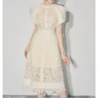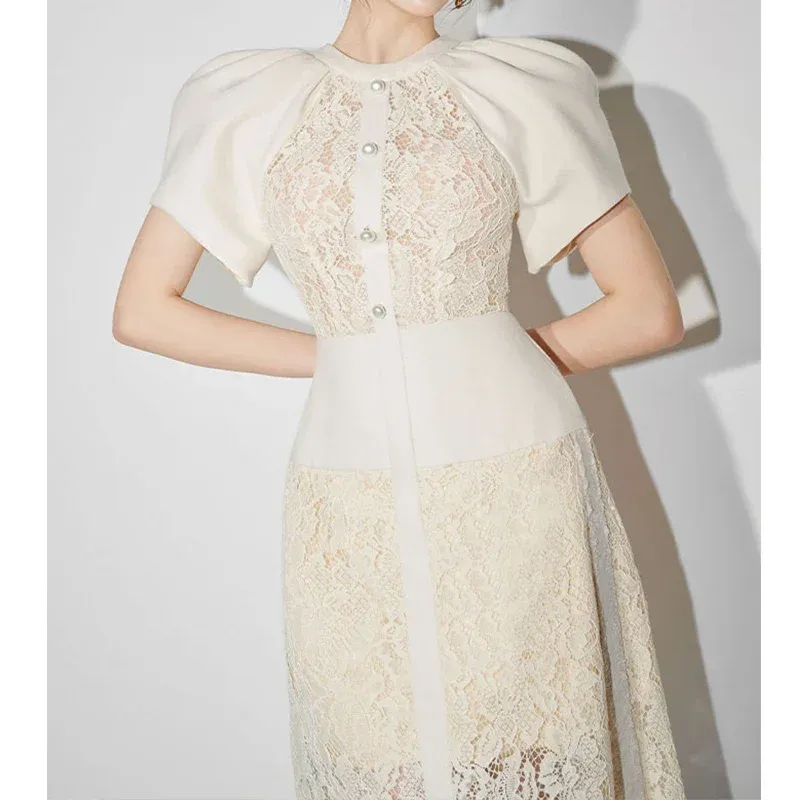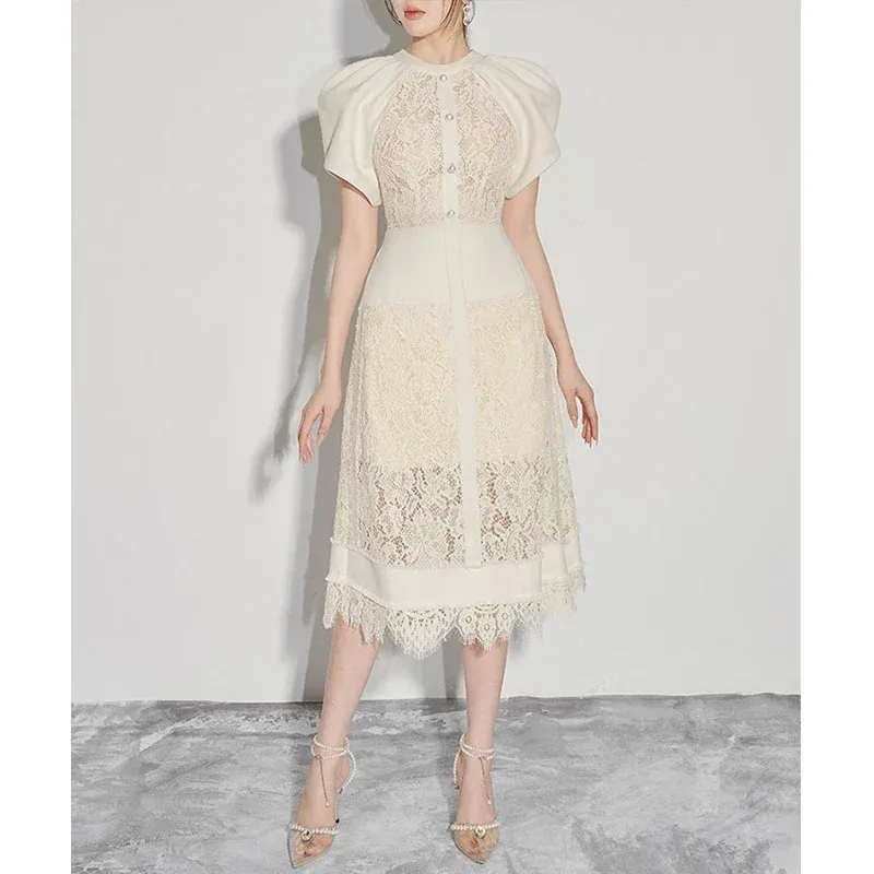 New Vintage Party Dress Women Hollow Out Puff Sleeve Bodycon Lady Clothing High Waisted Luxury Design Vestido Summer
