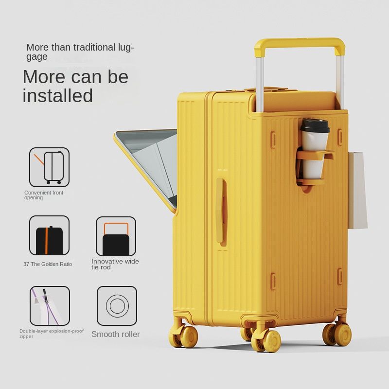 New Wide Tie Rod Luggage Front Opening Laptop Bag Multifunctional Travel Suitcases 20 inch Cabin Bag 24-30''Large Size Suitcases
