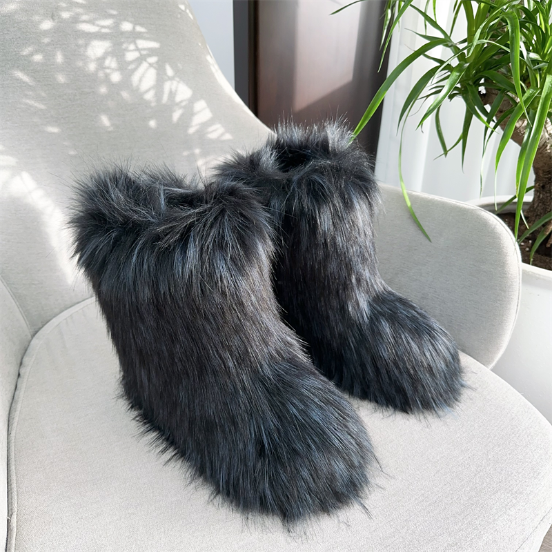 New Winter Fur Onepiece Raccoon Fur Female Snow Boots Fur Shoes Outdoor Mid Leg Boots