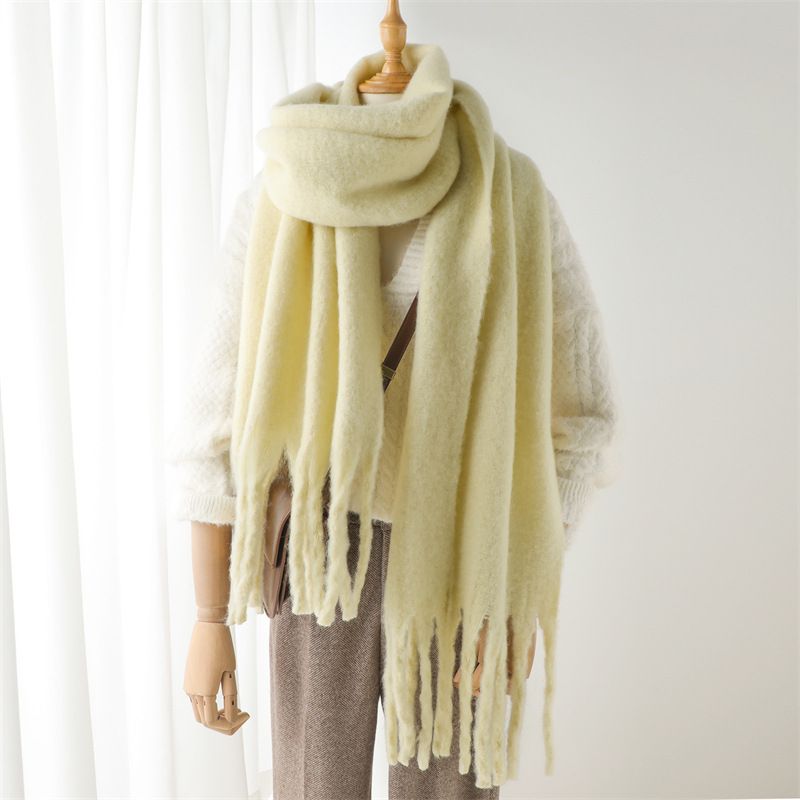 Featuring a solid pattern and tassel detail, it's a stylish accessory suitable for various outfits and occasions.