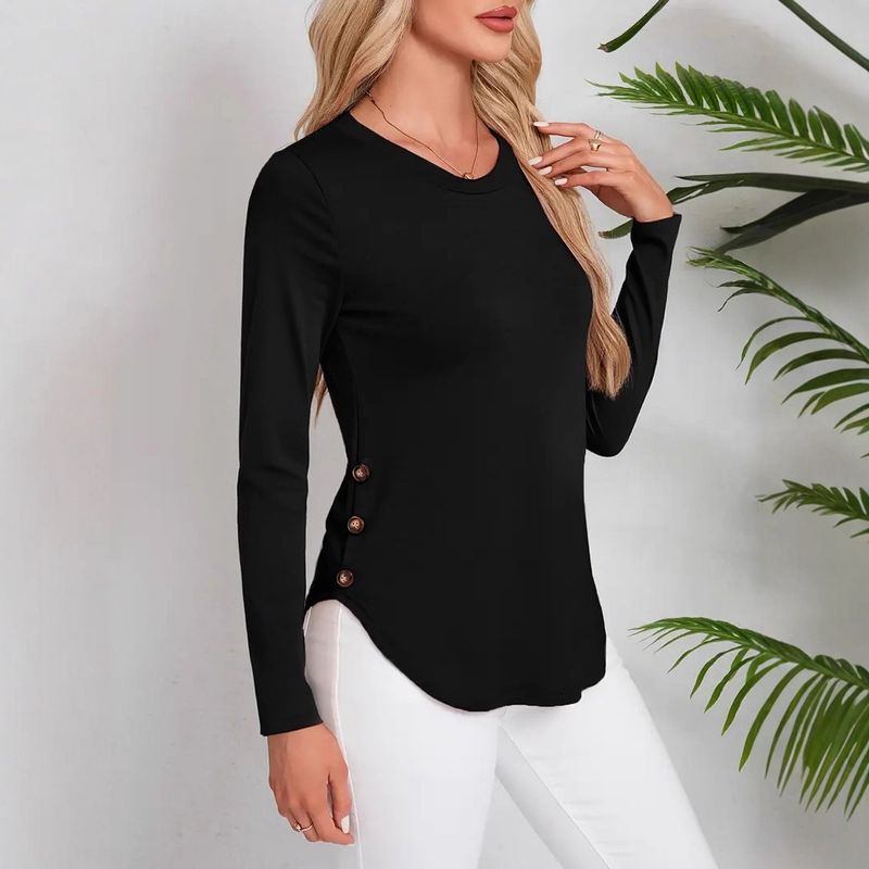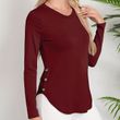 New Women's Autumn And Winter Round Neck Curved Hem Long Sleeve Wine Red 2XL
