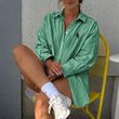 New Women's Casual Striped Long-sleeved Shirt Green S