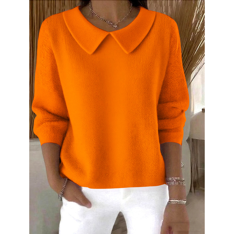 New Women's Loose Casual Solid Color Long Sleeve Orange Red XXXL