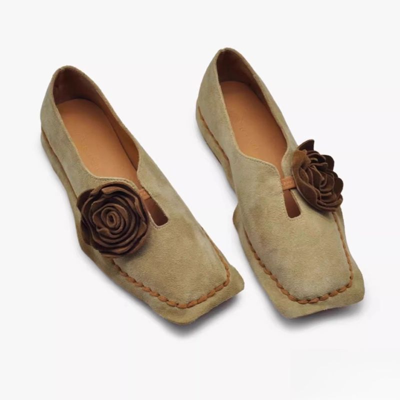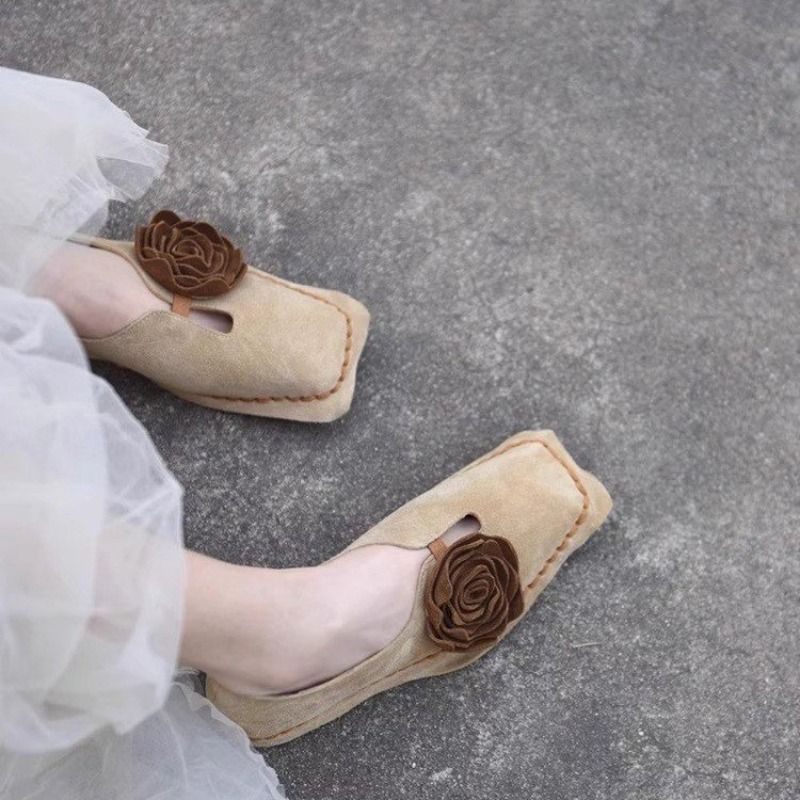 New Women‘s Ugly Shoes Square Toe Flat Floral Print Leather Handmade Moccasins Soft Sole Comfortable Breathable Designer Shoes