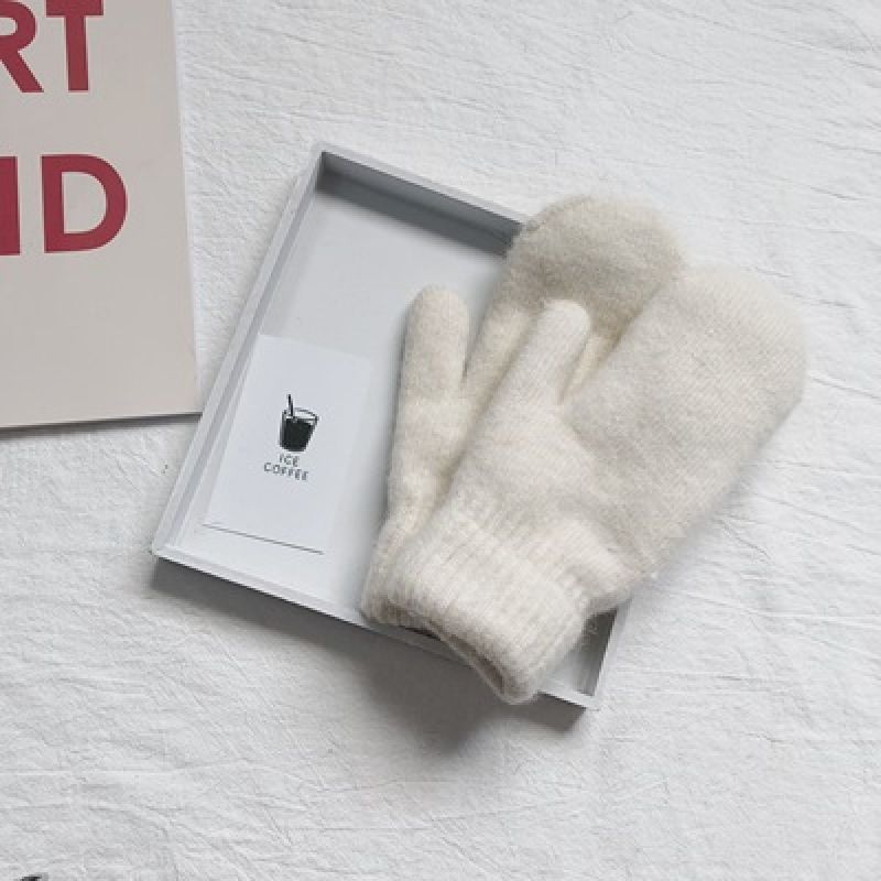 New Women Winter Keep Warm Plus Cashmere Solid Elasticity Soft Full Fingers Mittens Gloves Imitation Rabbit Fur Knitted Cute