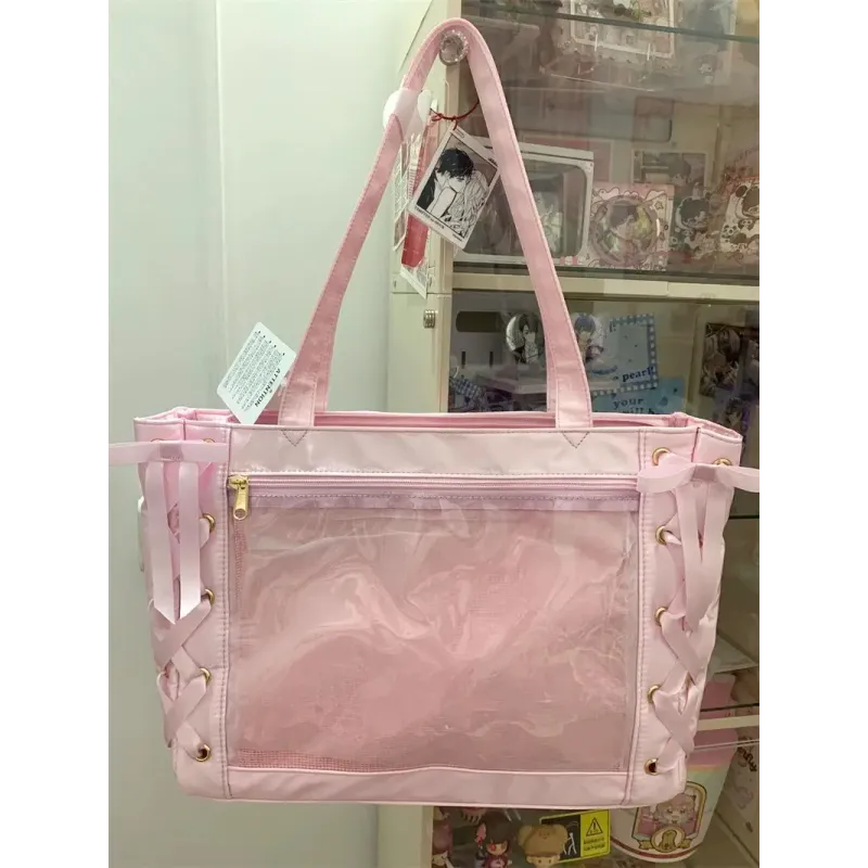 New Y2K Sweet Lolita Pink Ita Bag Women Japanese Transparent Large Capacity Tote Bag Ladies Harajuku Kawaii Handbag Aesthetic