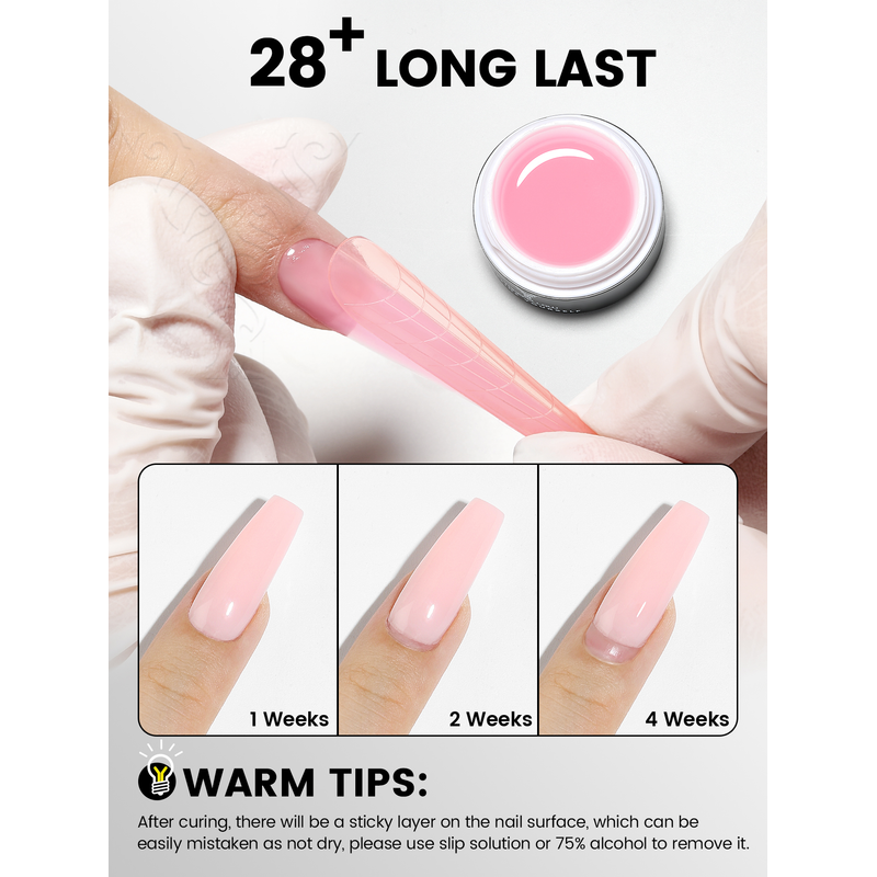 Type: Construction Poly Nails Gel, need to use with top base coat,cure by UV LED lamp