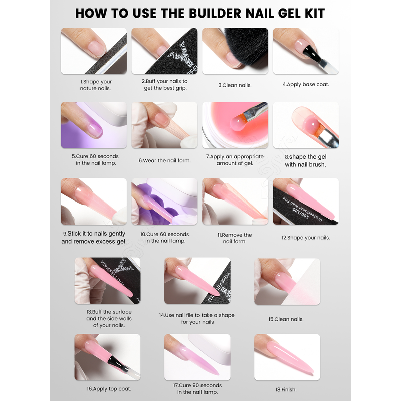 Type: Construction Poly Nails Gel, need to use with top base coat,cure by UV LED lamp