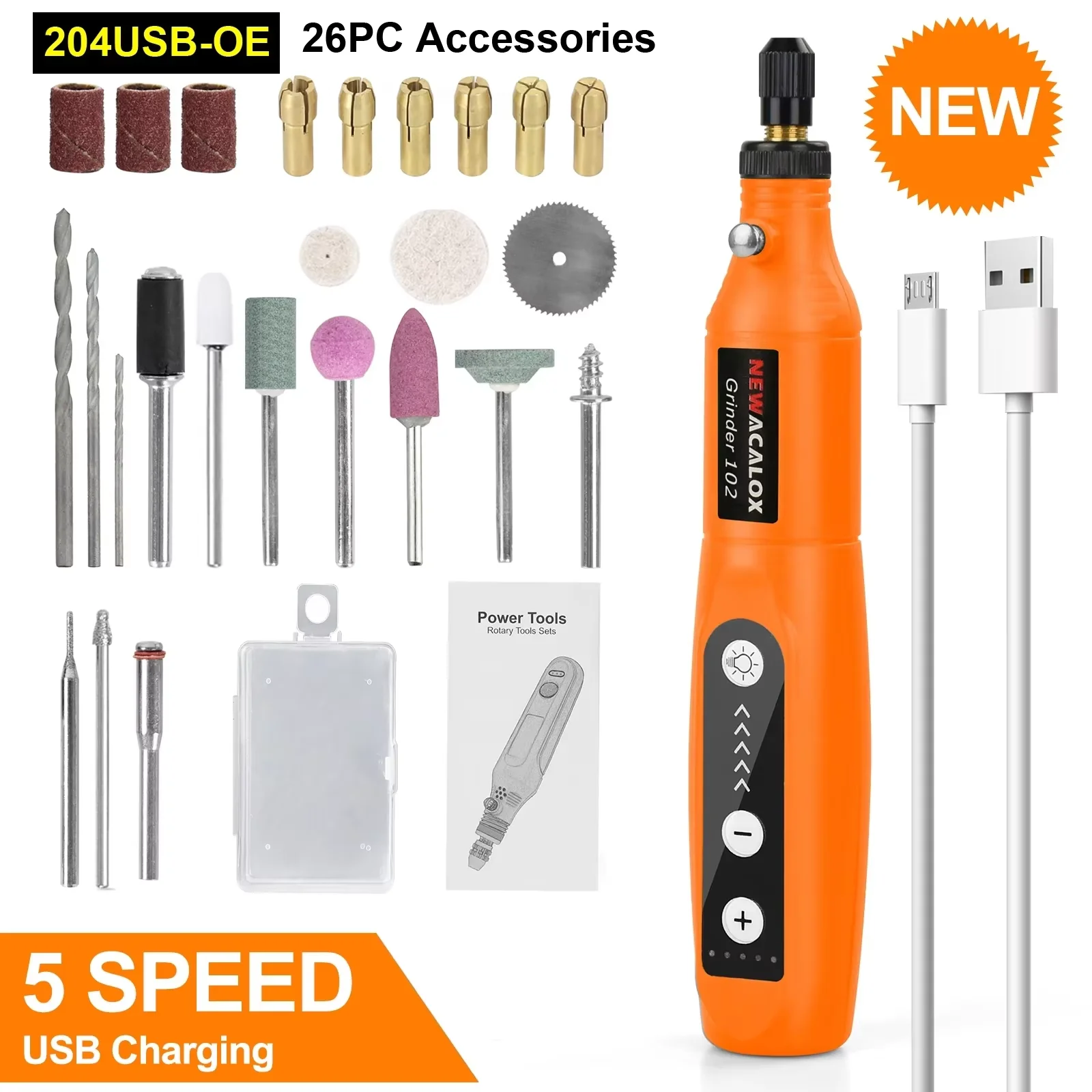 NEWACALOX Mini Grinder Machine Electric Drill USB Charging Variable Speed Engraving Pen Rotary Tools Kit Grinder Set for Milling