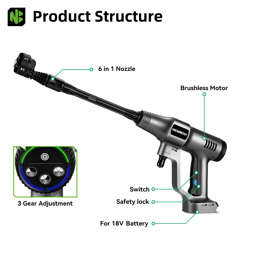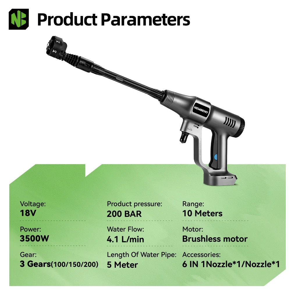 NEWBENY 3500W Brushless Electric High Pressure Car Washer Cordless Cleaning Water Spray Gun Garden Tool For Makita Battery Pin