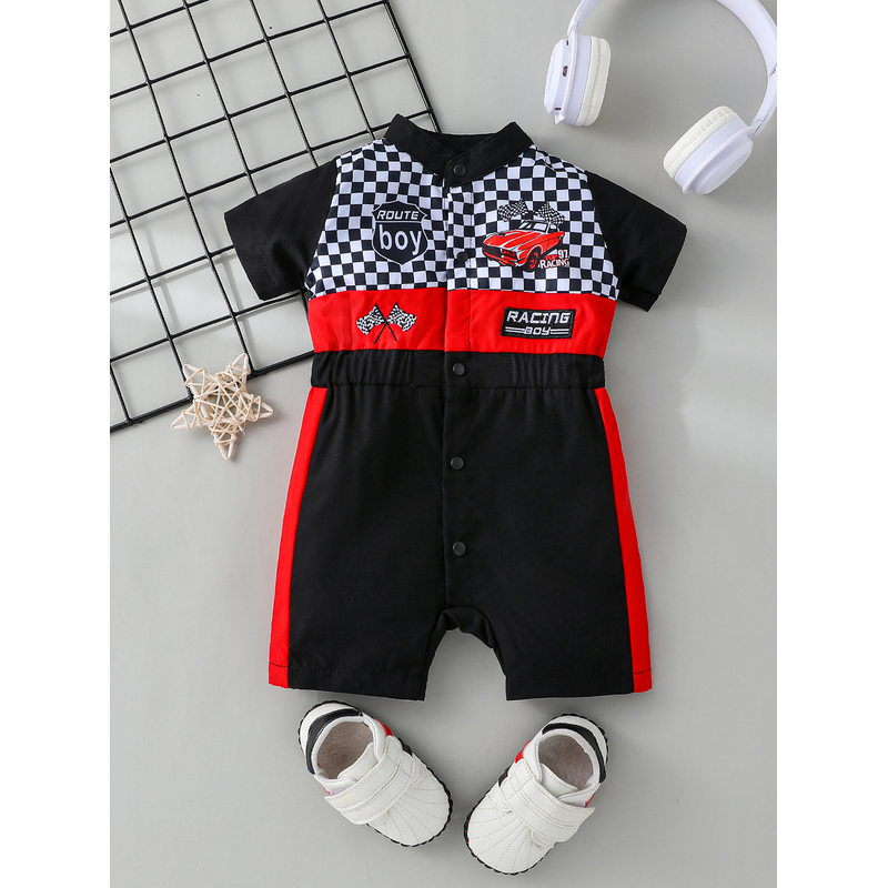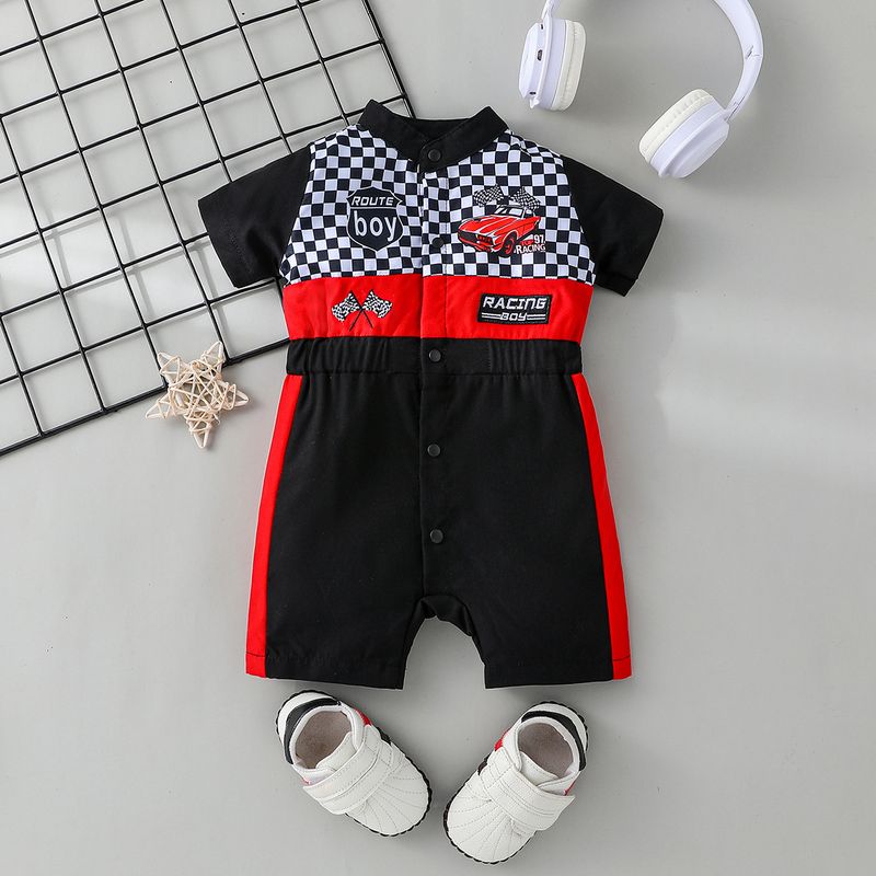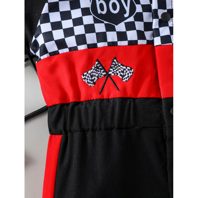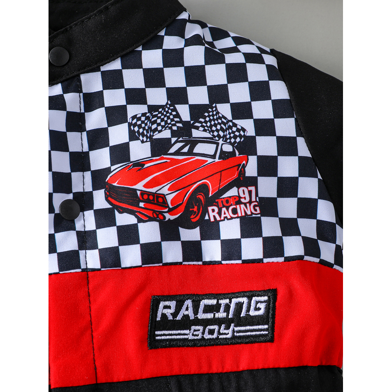 Newborn Baby Boy Styling Suit Mini Racer Outfit with Embroidered Stand Collar and Zipper Denim Overalls