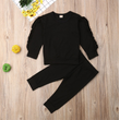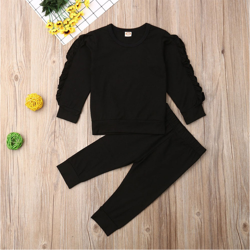 Newborn Baby Boys Girls Ruffles Jumper Solid Long Sleeve Sweatshirt Tops Pants Infant Kids 2Pcs Outfits Clothes Set Fall Clothes Brown 90cm