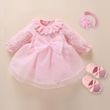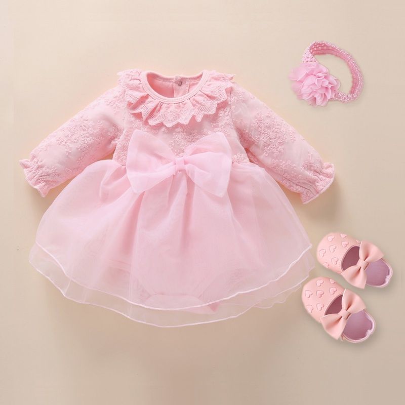 Newborn Baby Girl Dresses Clothes For 0-3 Month Set Party Birthday Dress Outfits 0-1 Years Shoes Tights & Long Socks Christening