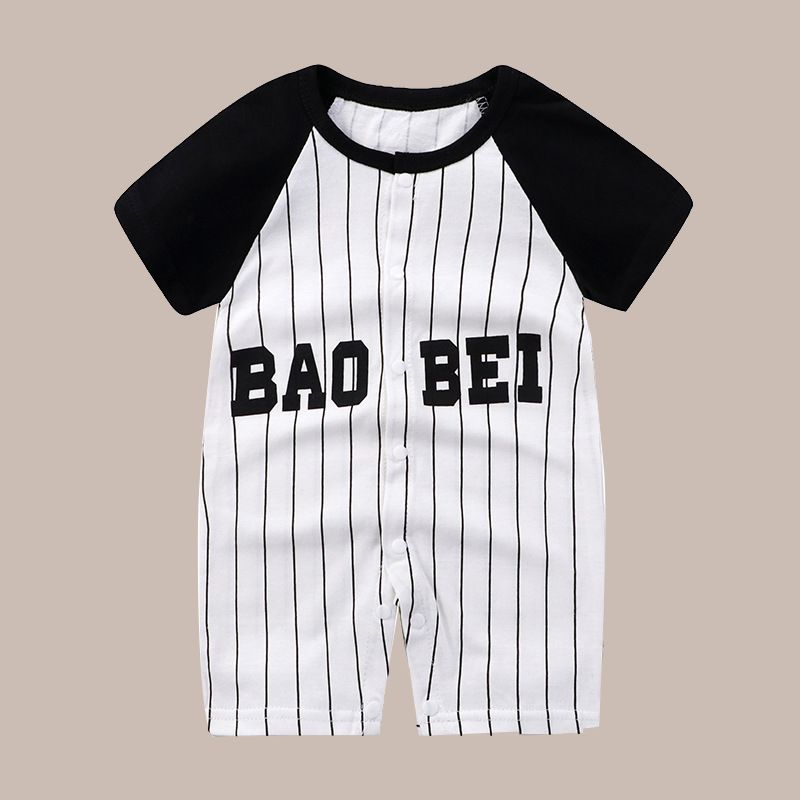 3-18M Newborn Infant Color Block sports Romper Short Sleeve Stripe Letter Embroidery rompers Onesie For Baby Boy Toddler Clothes