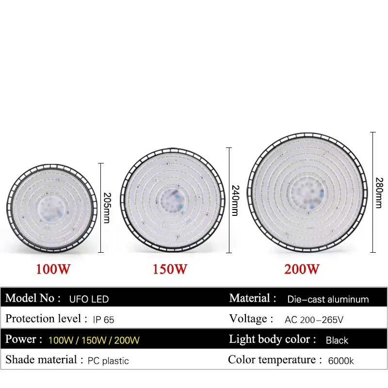 Newest 100/150/200W 220V High Bay Lights UFO LED Warm/White Lights Warehouse Garage Lights Super Bright Industrial Lighting Hot