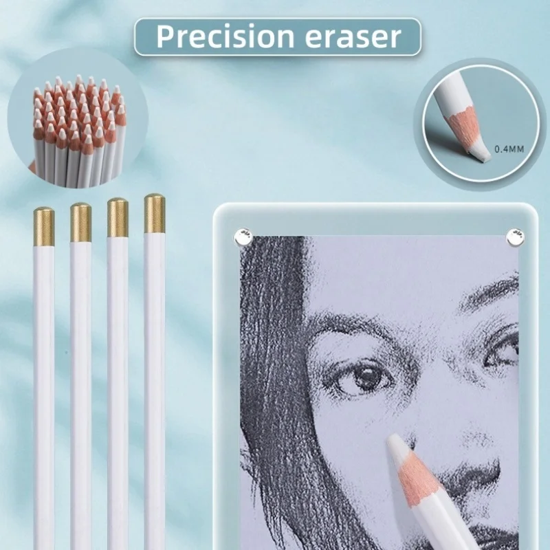 【PRECISE ERASER】The Detail Eraser Pen can be modified by changing the thickness of the pencil tip to erase different sized mistakes without blurring the