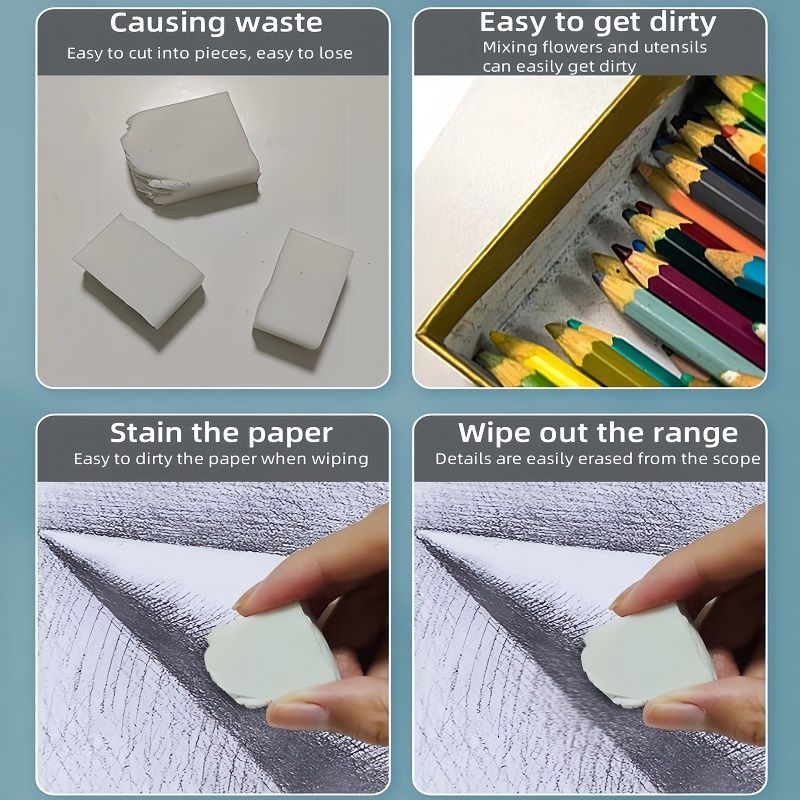 rest of the picture, it can be used with traditional pencils, coloured pencils or charcoal, it is the ideal eraser for drawing enthusiasts.