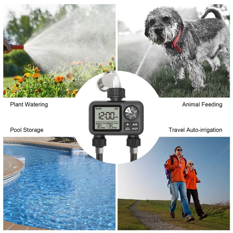 - LARGE DIGITAL DISPLAY: easy to read display can be seen at a distance- RAIN DELAY: save water by skipping watering cycles after it rains without interrupting your set program