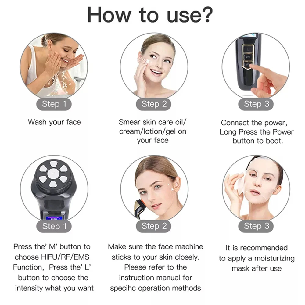 Newest 4 IN 1 Mini HIFU Machine 3nd Generation EMS Pulse Warm Up Facial Massager for Faces and Body Ultrasound Beauty Device