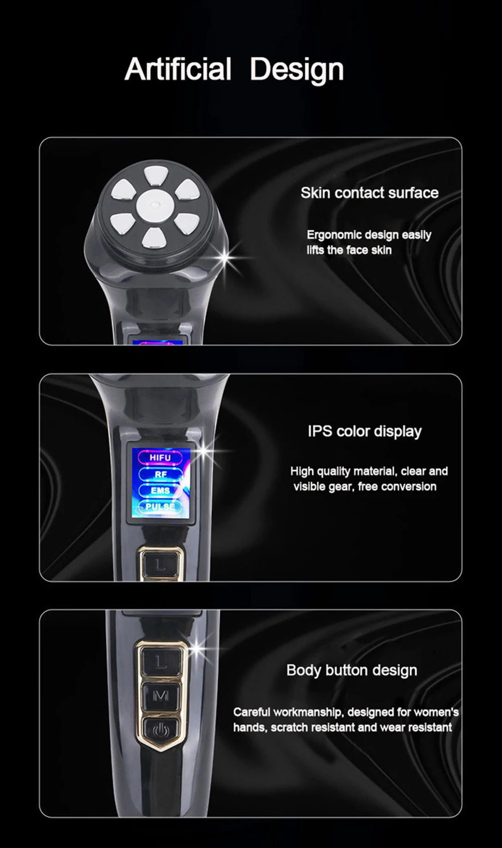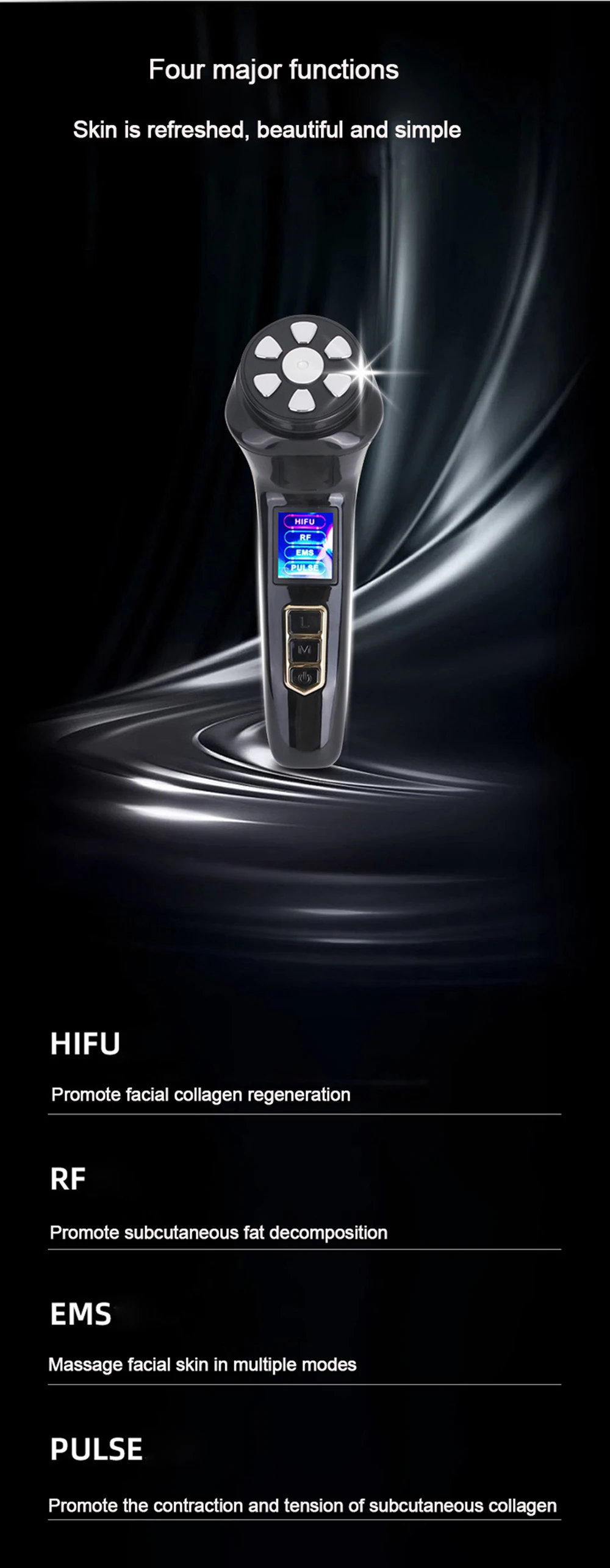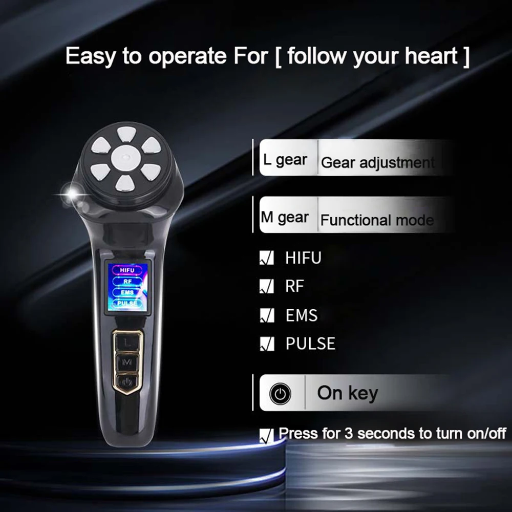 ③ Press L to select a mode, HIFU/RF/EMS/PULSE can rotate down to select a mode ;