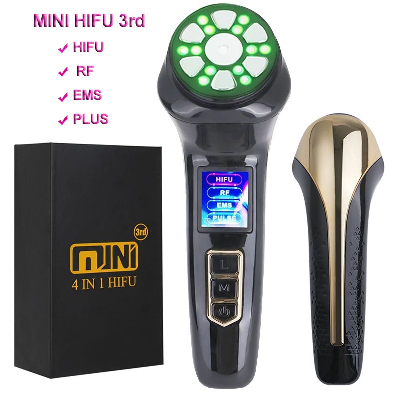 Newest 4 IN 1 Mini HIFU Machine 3nd Generation Facial Massager EMS RF Pulse Warm Up for Faces and Body Ultrasound Beauty Device
