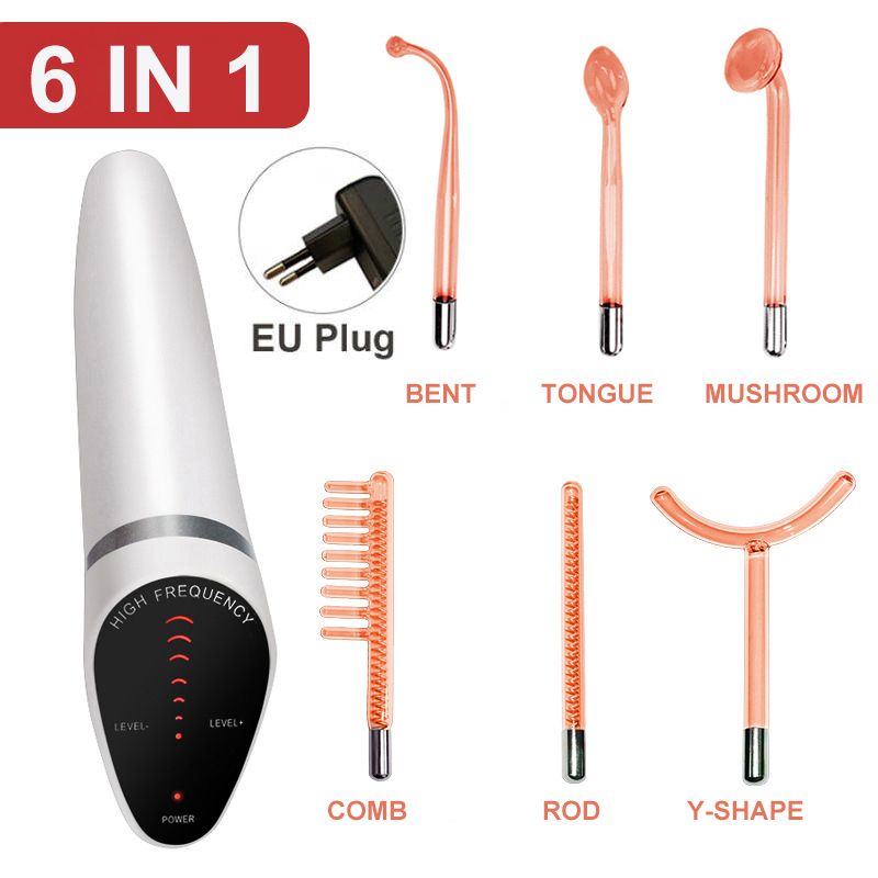 Newest 6 in 1 Spark Electrodes High Frequency Neon & Argon Skin Tightening Hair Follicle Facial Beauty Wand Machine Facial Care