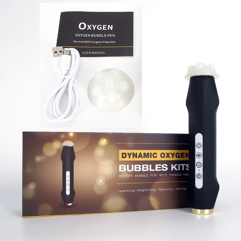 The OXYGENX+Oxygen Bubble Pen is a professional beauty bubble LED oxygen facial machine.It is specially used for oxygen bubble facial treatments with the Oxygen Bubble Pod Premium Kits.When using the product, the skin will produce carbon dioxide.stimulating the number of oxygen and hemoglobin cells in the blood,further increasing the oxygen content under the skin.The skin absorbs more nutrients to achieve whitening and anti-aging effects.
