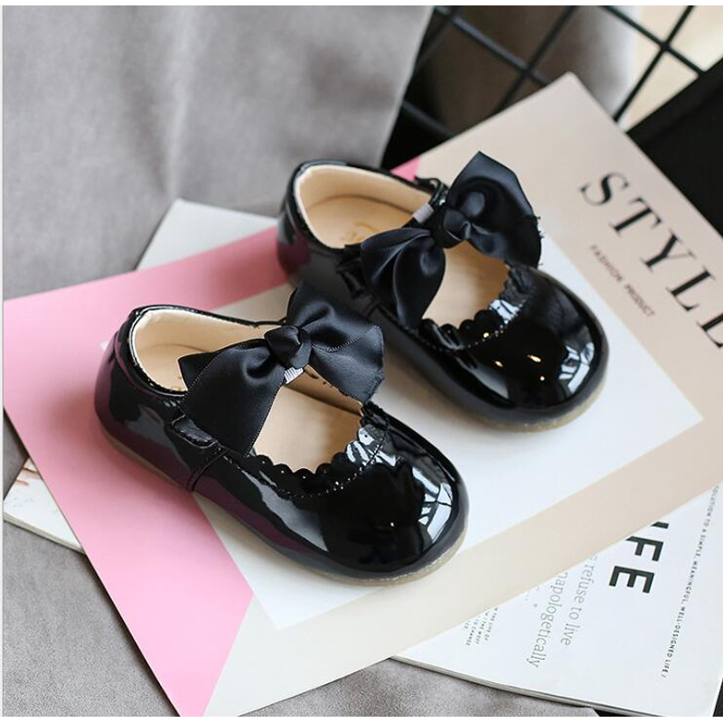 Newest Spring Autumn Baby Girls Fashion Patent Leather Big Bow Princess Mary Janes Party Shoes Solid Color Student Flats Shoes