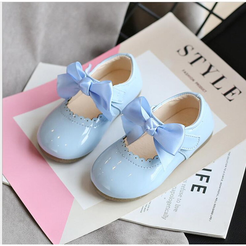 Newest Spring Autumn Baby Girls Fashion Patent Leather Big Bow Princess Mary Janes Party Shoes Solid Color Student Flats Shoes