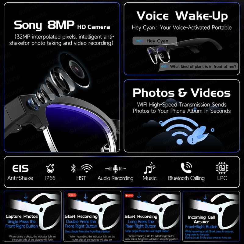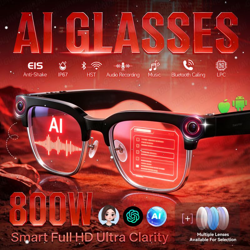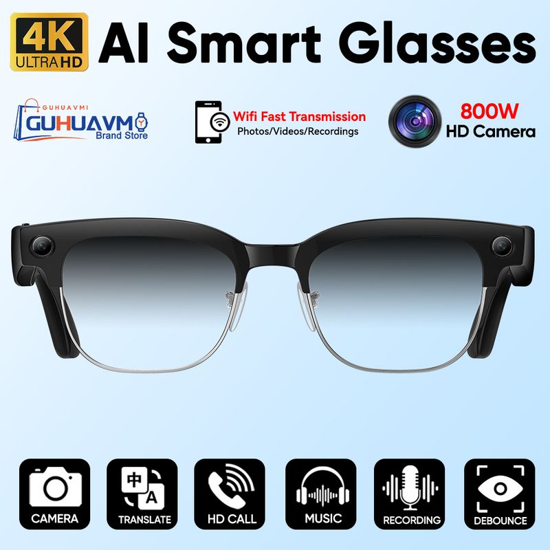 Newly Smart AI-Glasses Men Women 4K 800W Camera Photos&Video Recognize Translation ChatGPT Recording Music Color change Glasses