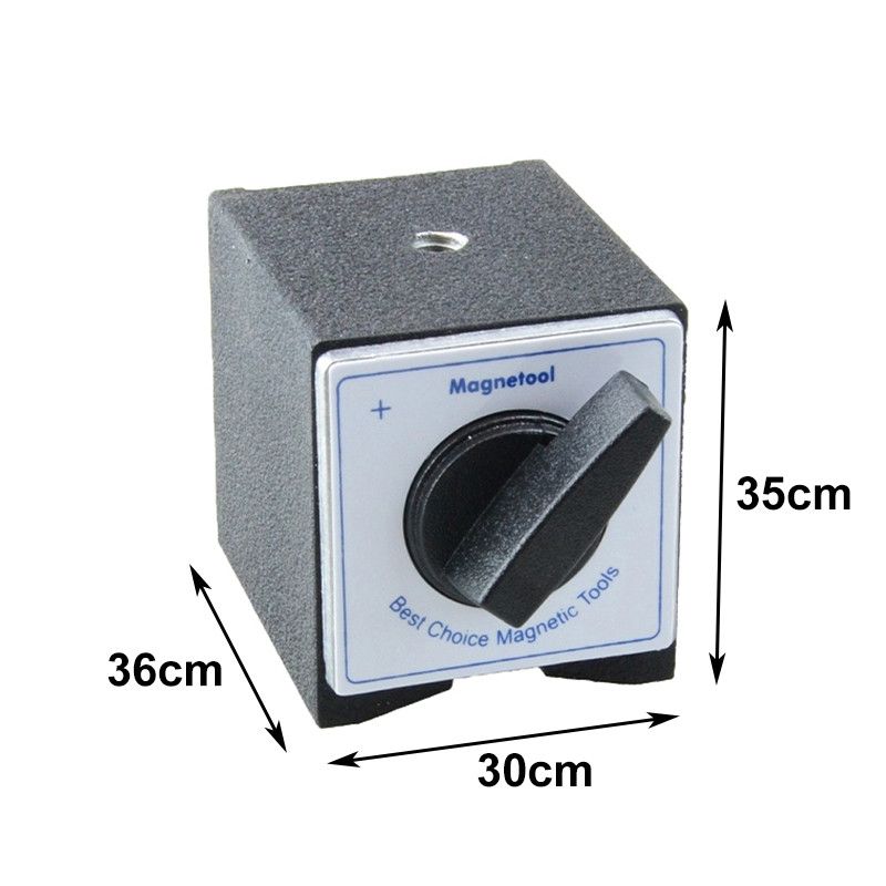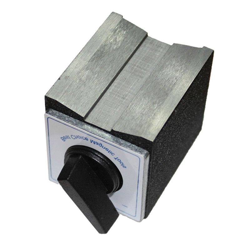 The Magnetic Base has permanent magnet inside the metal block body, with the "on/off" or "+ / -"switch to open or shade the magnetic field to hold on the ferrous metal surface or remove the magnetic base. The magnetic base has the screw hole on the top surface to install holderfor dial indicator, gauge, line cutting arm, lifting bar and etc.
