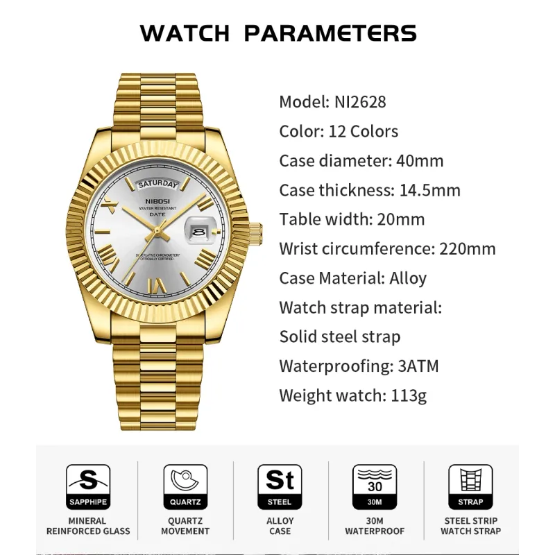 NIBOSI Brand Original Stainless Steel Quartz Watches For Men Luxury Date Display Luminous Fashion Men's Watch relogios masculino