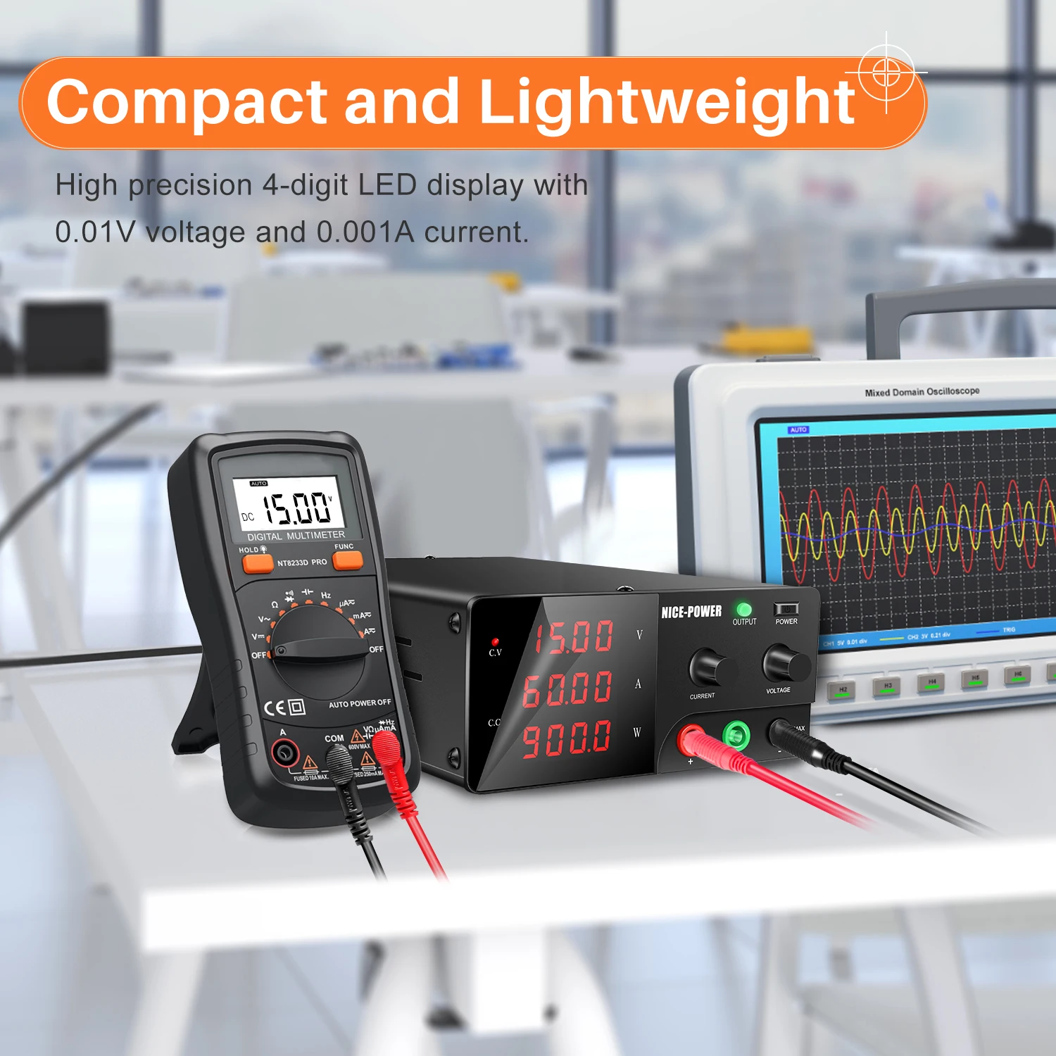 š„ćCompact Design, Quality Checkć The bench power supply measures only 38*24*13cm and weighs only 3kg, saving you more bench space and making it easy to carry around when you need it. Delivery includes: DC power supply *1; power cord *1; English manual; low-power output cable *1; high-power output cable *1. We offer a 12-month repair policy. If you have any questions about our lab DC power supplies, please contact us and we will reply within 24 hours.