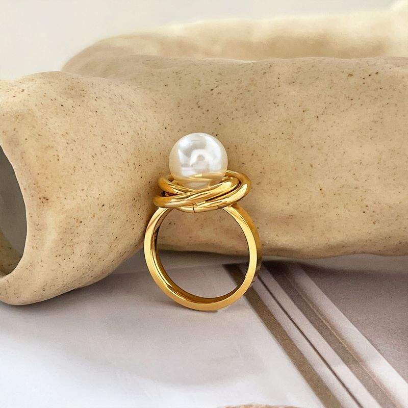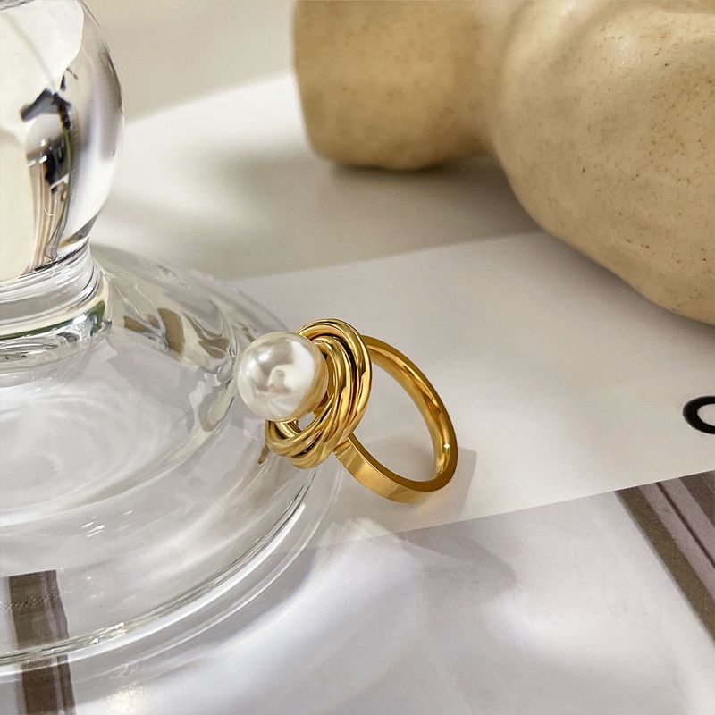 Niche Pearl Ring Female Light Luxury Design Sense Simple Retro Gold Number eight