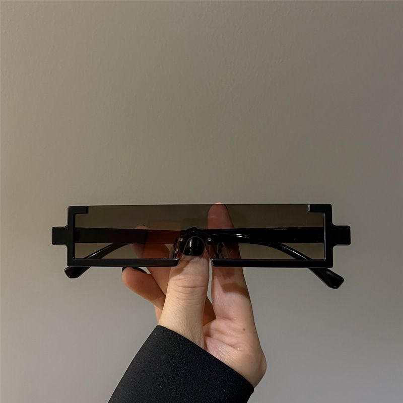 Niche Technology Future Metal Rectangular One-piece Sunglasses Black Frame Dried