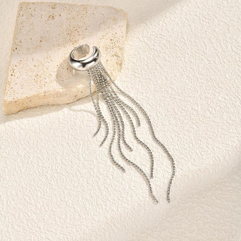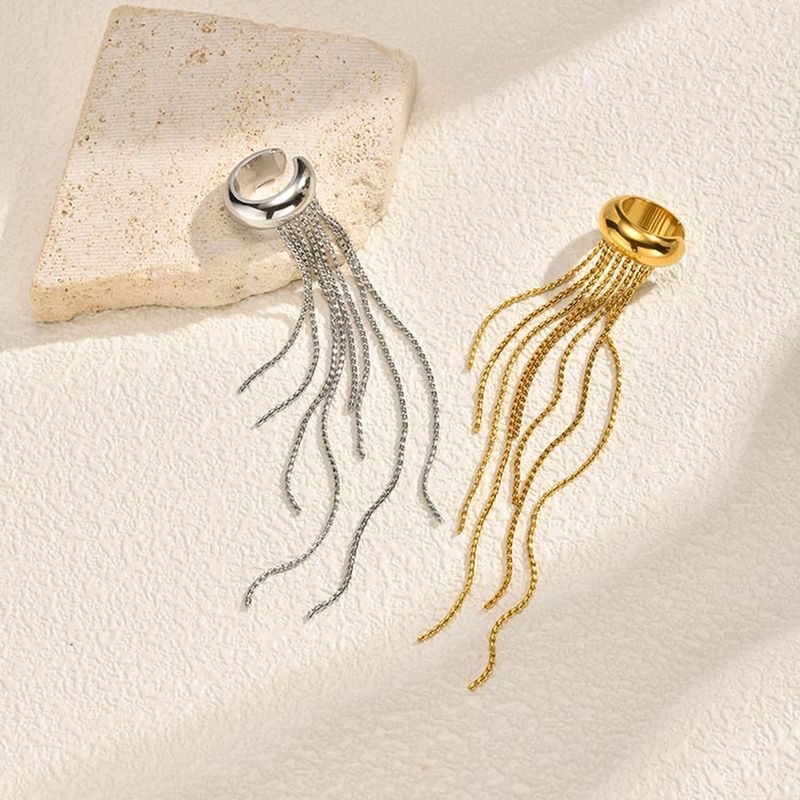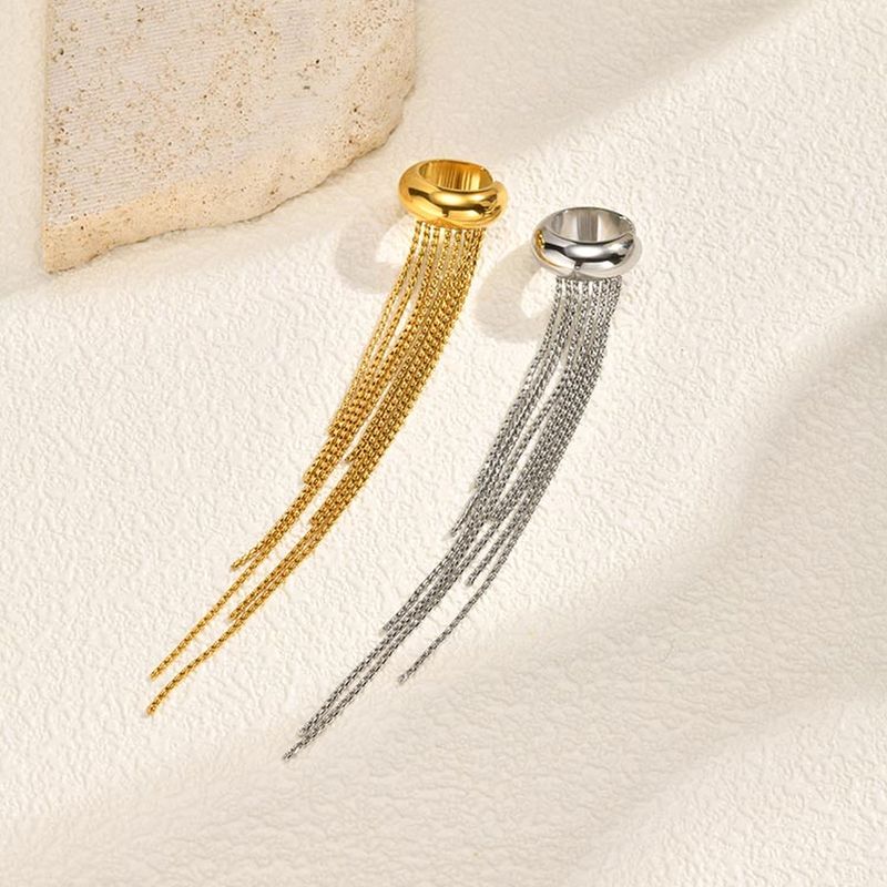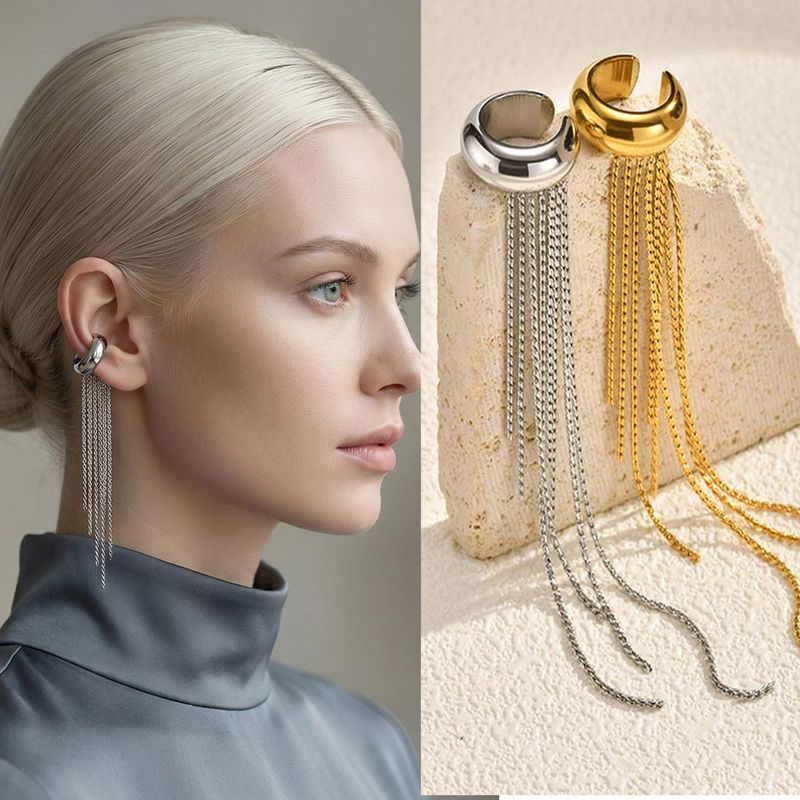 Nickel-free Gold Color Long Tassel Drop Earrings for Women, Stainless Steel Non-piercing Clip Earrings, Statement Ear Cuffs