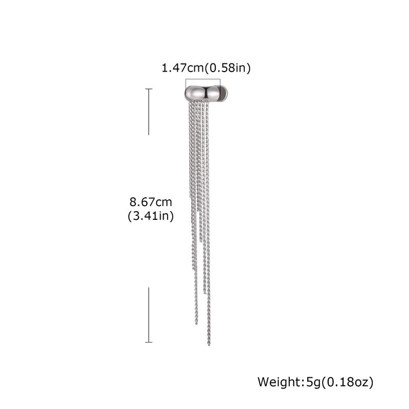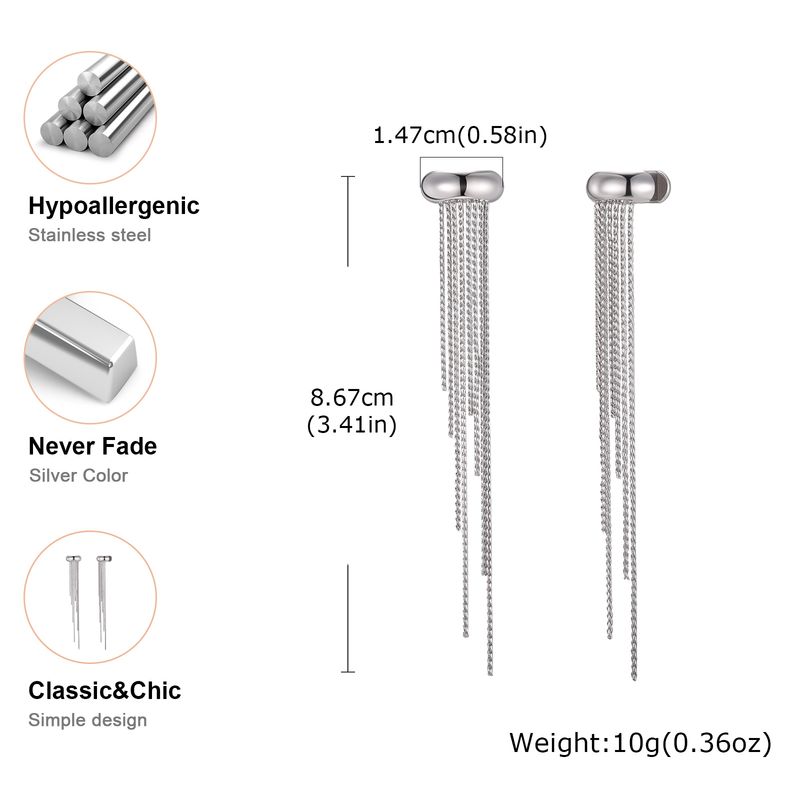 Nickel-free Gold Color Long Tassel Drop Earrings for Women, Stainless Steel Non-piercing Clip Earrings, Statement Ear Cuffs