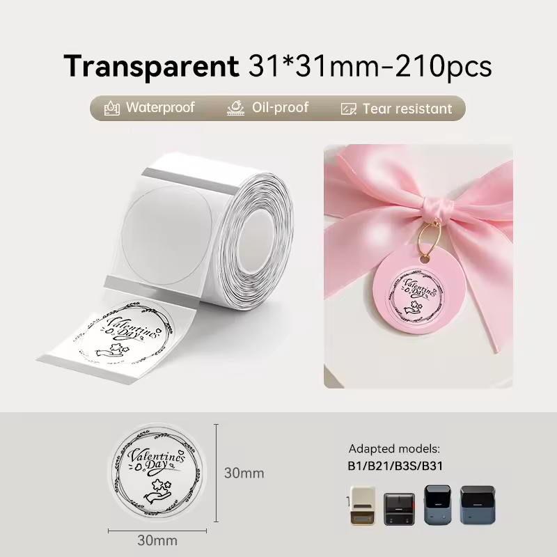 Niimbot B1 B21S B21PRO Transparent Label Portable Mini Printer 30-50mmThermal Paper Adhesive Labels For B3S/B203 Niimbot Printer