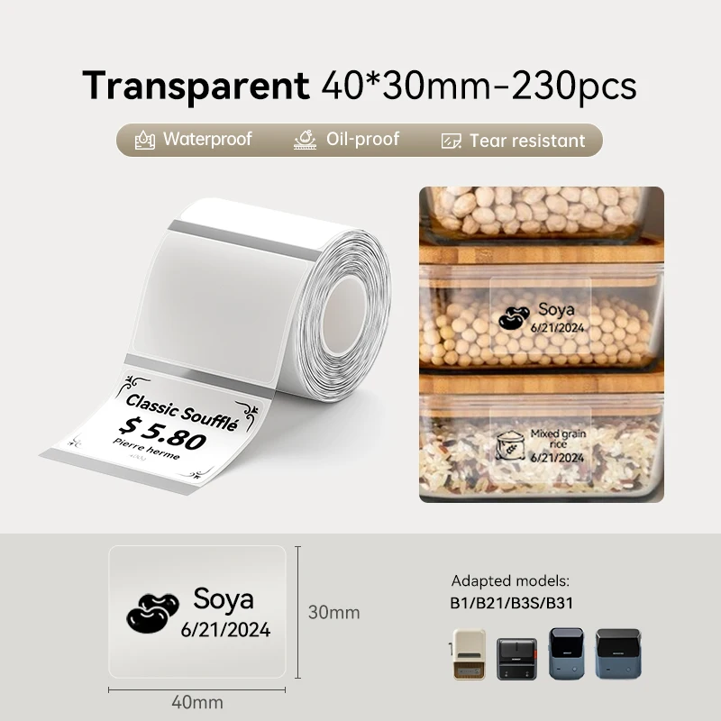 Niimbot B1 B21S B21PRO Transparent Label Portable Mini Printer 30-50mmThermal Paper Adhesive Labels For B3S/B203 Niimbot Printer