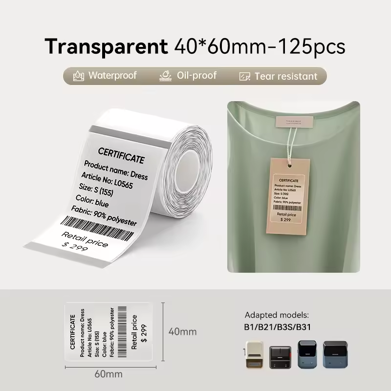 Niimbot B1 B21S B21PRO Transparent Label Portable Mini Printer 30-50mmThermal Paper Adhesive Labels For B3S/B203 Niimbot Printer