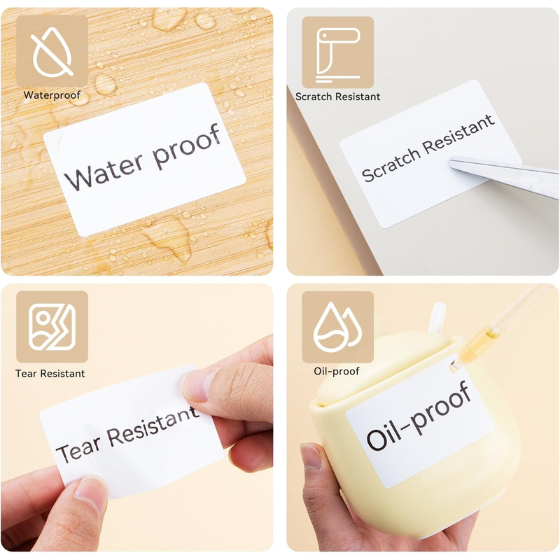 - Label paper characteristics: waterproof, oil-proof, scratch-proof, tear-proof, no glue