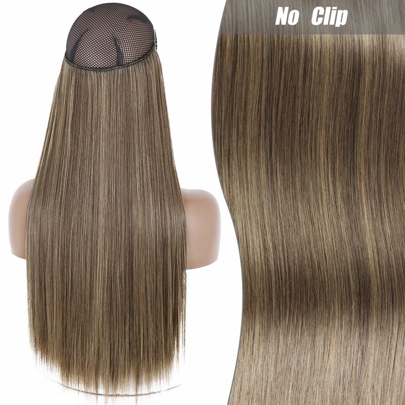 No Clips Natural Hair Extension Synthatic Artificial Long Straight Hairpiece Blonde Black Mixed Color False Hair Piece For Women