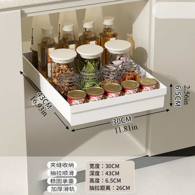 No-Drill Magic Tray Heavy-duty slide-out organizer for cabinets/sinks. Easy install, huge space saver! Perfect for tiny homes