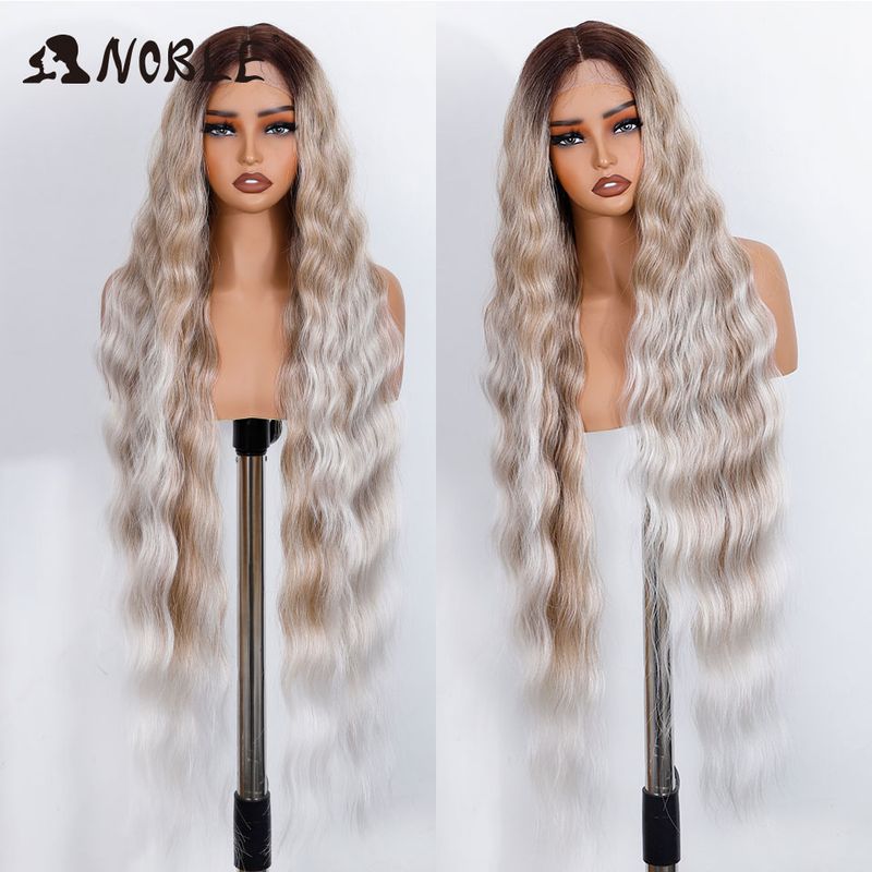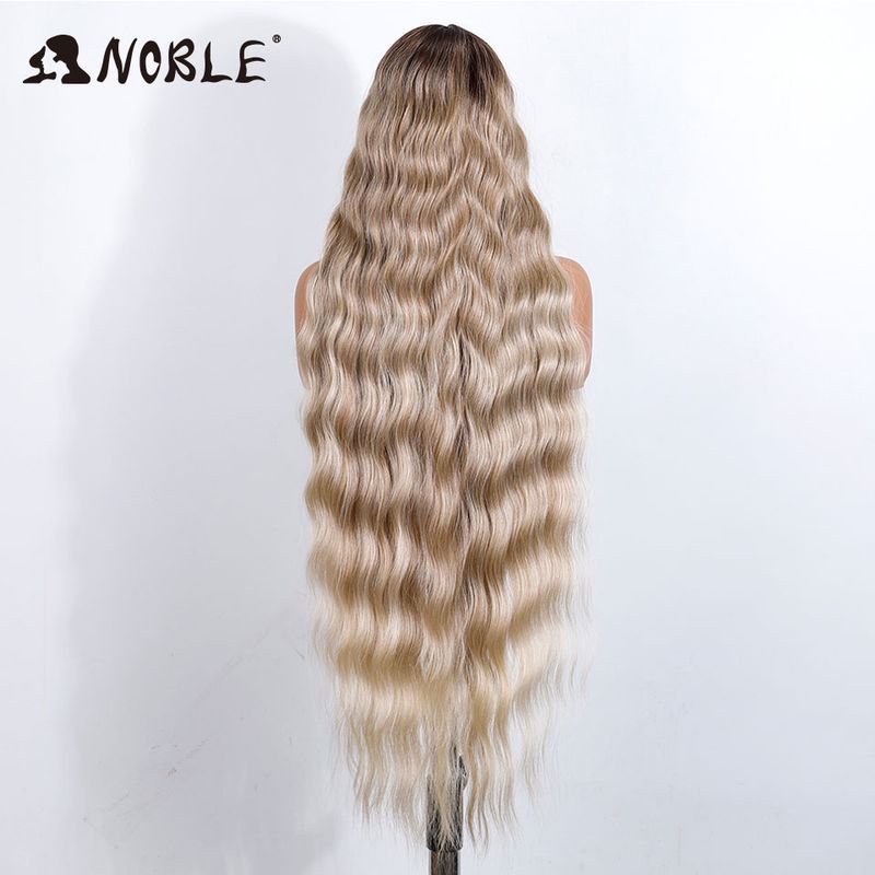 Noble Synthetic Lace Front Wig 36 " Long Wavy Lace Part Body Wavy Golden Wig For Women Lace Front Wig Ombre Blonde Cosplay Wig