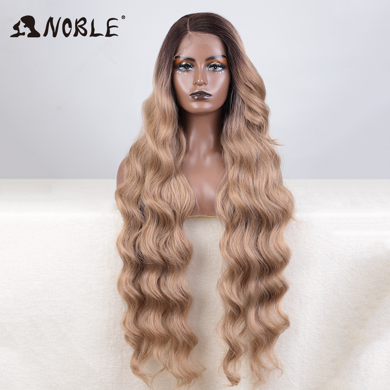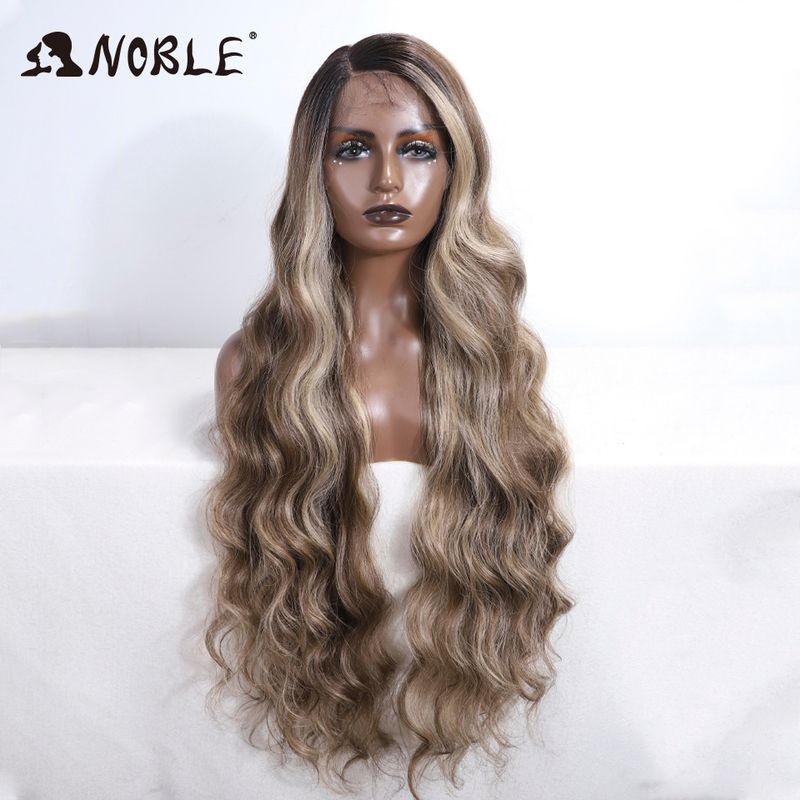 Noble Synthetic Lace Front Wig Long Wavy 36 " Body Wavy Side Part Lace Wig For Women Lace Front Wig Ombre Blonde Cosplay Wig