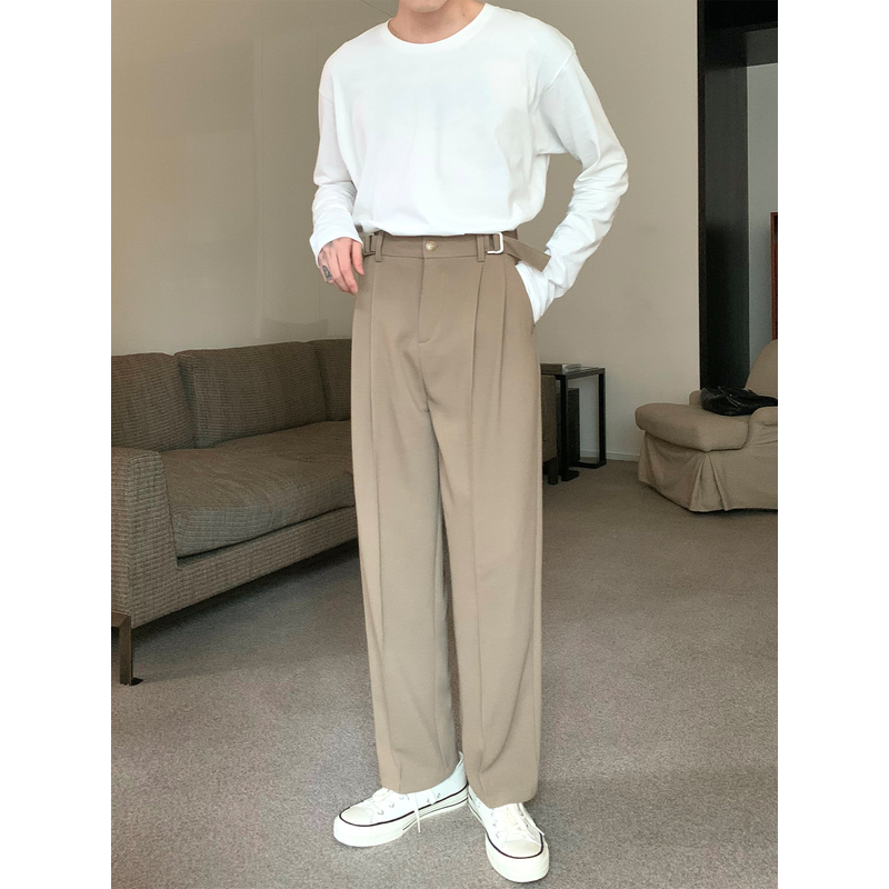 Non-iron Straight Suit Trousers Men Loose Casual Khaki S