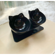 Non Slip Double Cat Bowl With Raised Stand Pet Food Cat Feeder Protect Cervical Vertebra Dog Bowl Transparent Pet Products Black double bowl A and box