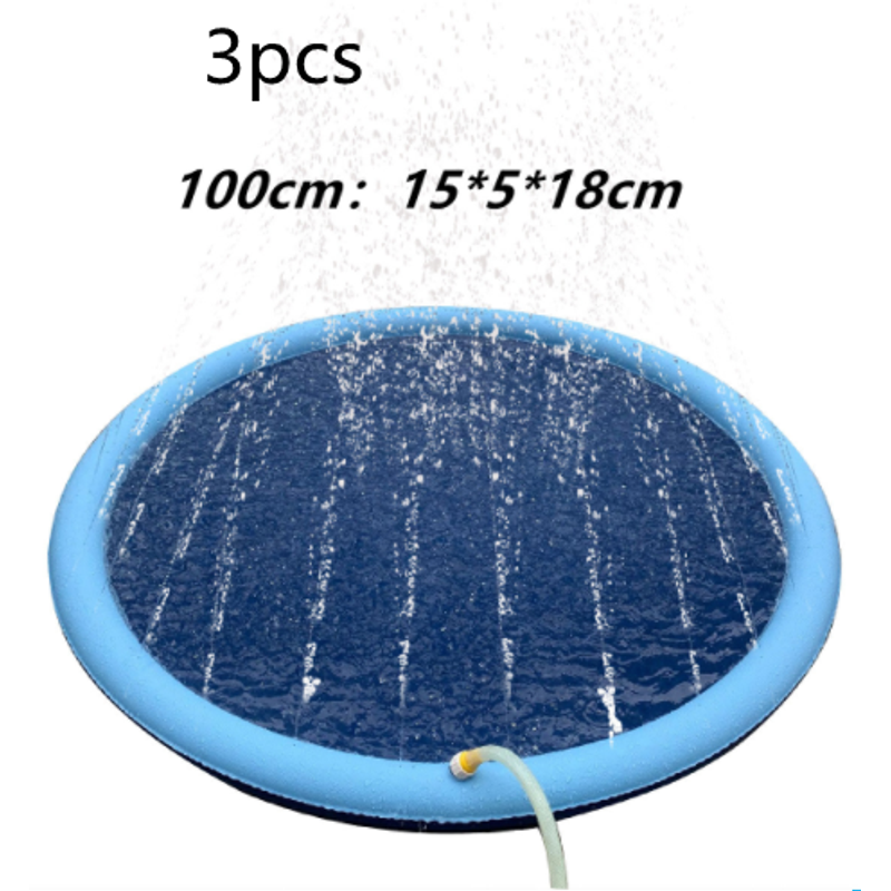 Non-Slip Splash Pad For Kids And Pet Dog Pool Summer Outdoor Water Toys Fun Backyard Fountain Play Mat Blue100cm3pcs