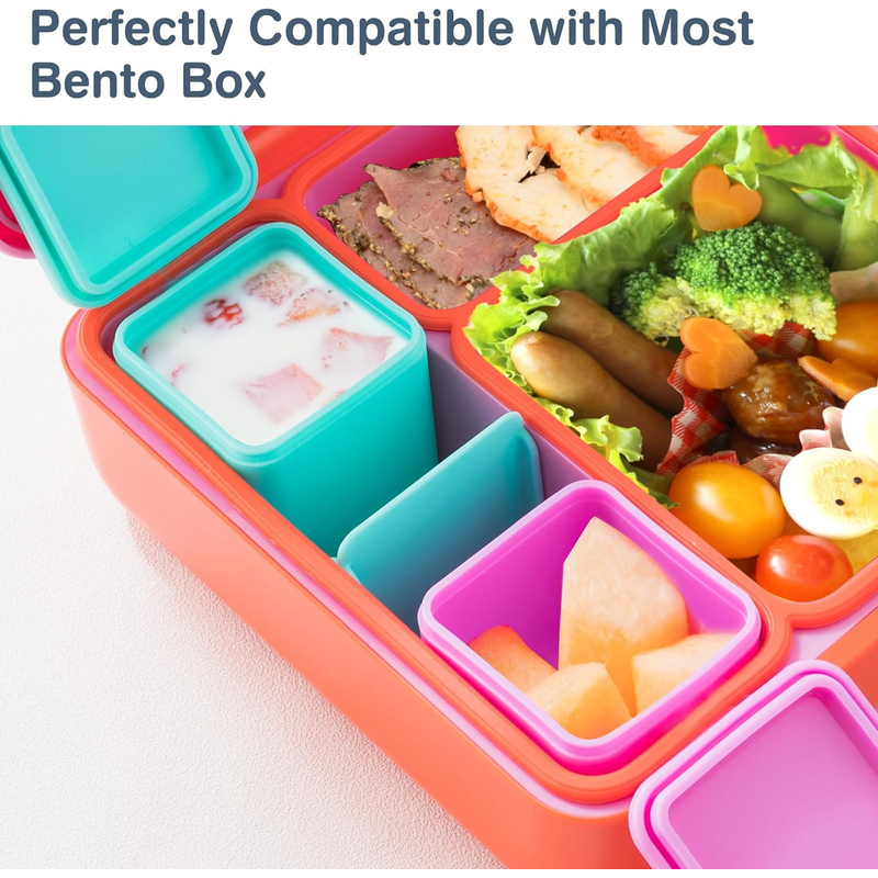This infusion container is made of food-grade silicone material and is easy to clean and store. The seal is not easy to leak, perfectly preserving the delicious taste of food and preventing odor mixing with other foods. Also suitable as a dipping sauce box. The box is sized to fit most lunch boxes. It is a great helper for food partitioning in your lunch box.