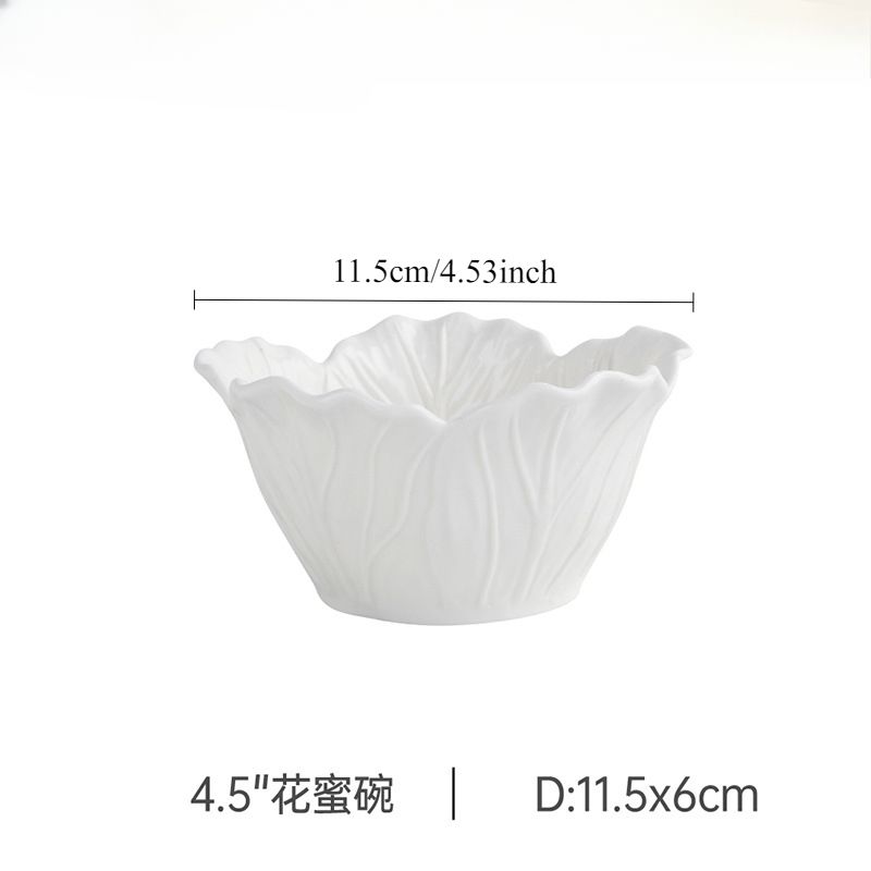 Nordic Luxury Flower Ceramic Bowl Pure white creative cabbage relief tableware Fruit and vegetable salad bowl, large soup bowl